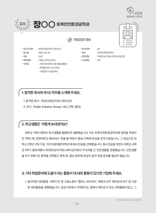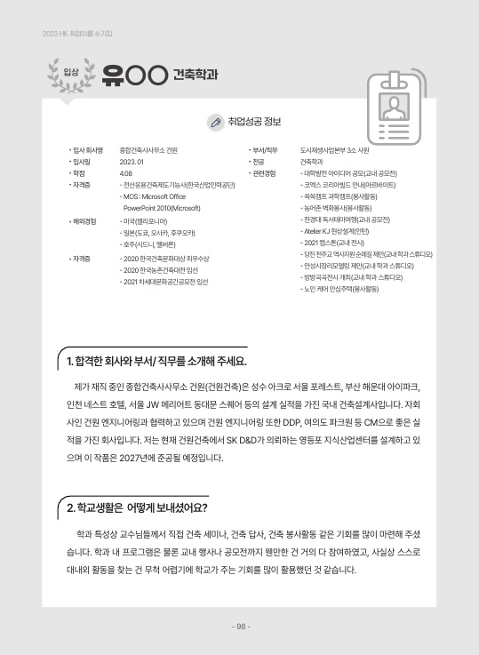 2023년 취업이룸 - 입상 수상작 -토목안전환경공학, 건축학